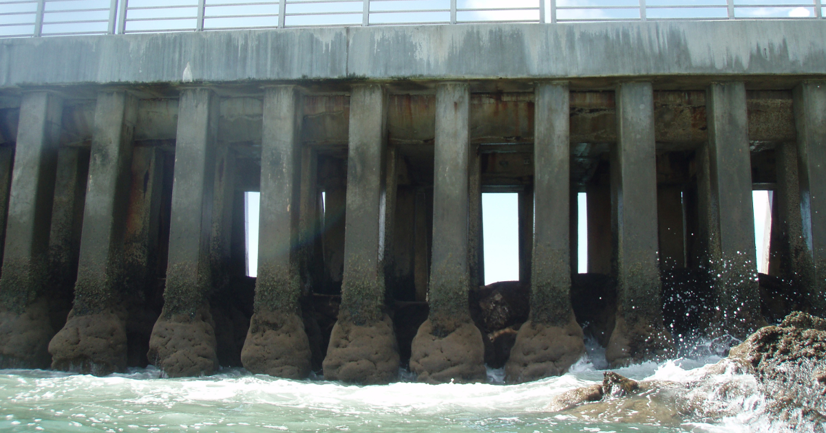 Back in the day, the north jetty at Sebastian Inlet was made up of a series of pilings skirted by a rock base. The Sabellariid would use this combination of pilings and rock to build colonies. Their colonies would then effectively “fill the gaps” between the pilings. Worm reef between the pilings created a unique living wall. This living wall helped to reflect wave energy from the base of the jetty back towards the surfing zone. When a reflected wave would meet another incoming wave, voilá, First Peak was born. Yes. It is true. Not only was First Peak a man-made wave due to the jetty, but First Peak was also biomechanical engineered and enhanced thanks to the worm reef.